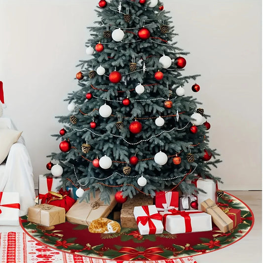 Red And Green Holly Leaf Printed Christmas Tree Skirt Home Decor
